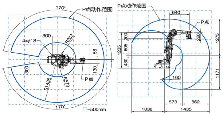 注1:位置重复精度遵照JIS B 8432 是标准的工具中心点(TCP)测量值